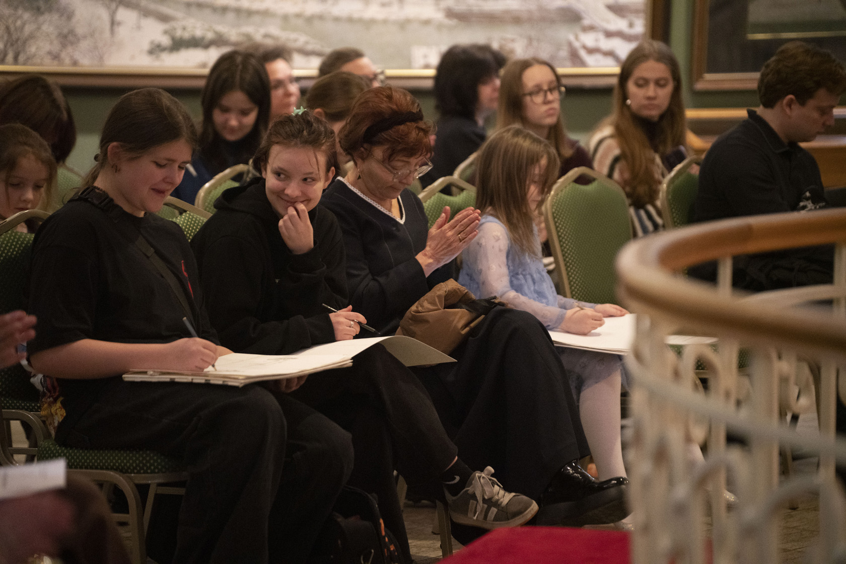 На фестивале «Январские вечера» музыка звучит не только в концертном зале — она продолжает жить в линиях, цвете и детских картинах. 29 января юные московские художники встретились в творческой мастерской «Рисуем музыку» в Школе акварели Сергея Андрияки. Они слушали программную музыку в исполнении учащихся МССМШ им. Гнесиных и прямо в зале делали первые эскизы — ловили настроение, ритм и характер звучания (посмотреть программу концерта).